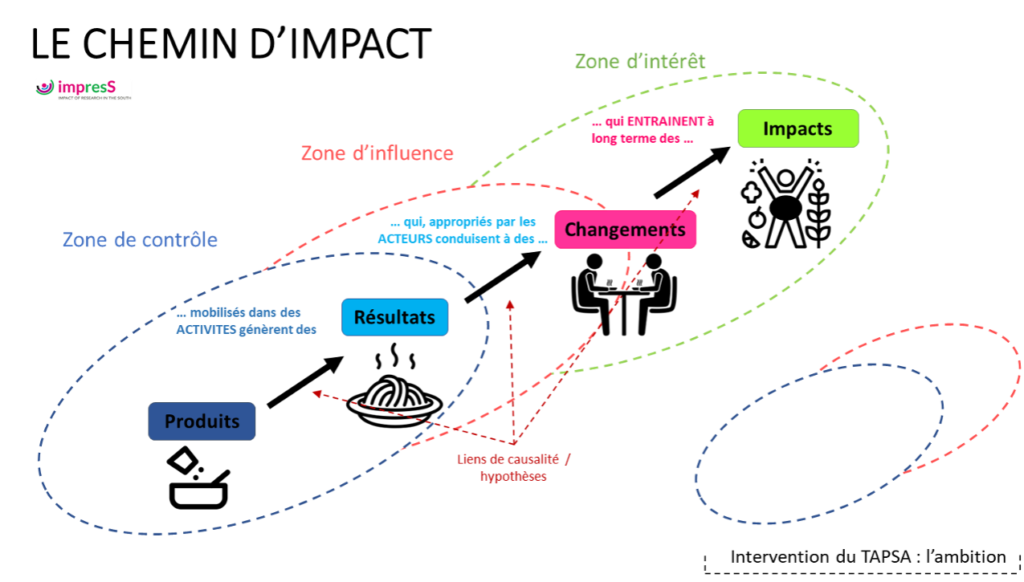 Ce sont ces changements que l’on va tenter de suivre et de comprendre dans le cadre du TAPSA : pour obtenir tel impact, qui doit faire quoi différemment ? C’est une démarche centrée sur les acteurs.